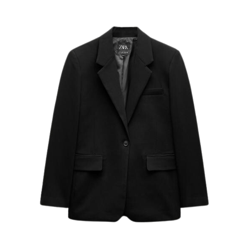 Para garantir que o conjunto funciona em qualquer ocasião, a escolha das peças-chave deve ser minimalista e fácil de combinar. Para isso, o blazer preto da Zara é uma opção segura e tendência nesta estação. Conjugue com um top branco básico da Tiffosi e umas calças de ganga, de corte direito e lavagem média, da Mango, para equilibrar o formal e o casual.