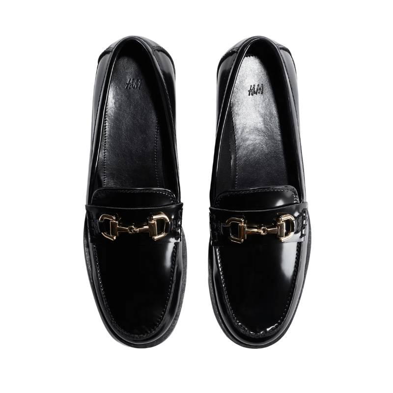 A escolha dos acessórios e do calçado faz toda a diferença para um dia no escritório. Mantendo o outfit base, os loafers pretos da H&M proporcionam o conforto necessário, sem sacrificar a elegância. Acessórios dourados, como os colares da Bijou Brigitte e o relógio da Gant, disponível na Boutique dos Relógios, tornam o look mais sofisticado. Para finalizar, a mala shopper personalizável da Parfois é a escolha ideal para levar todos os essenciais.